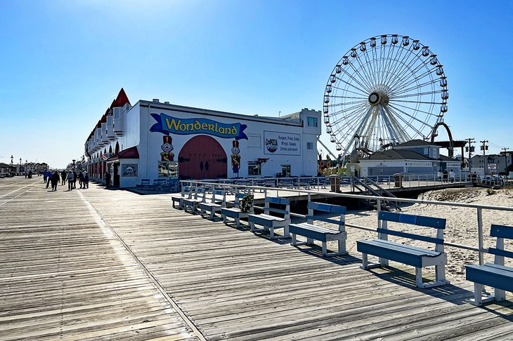 It’s impossible to miss Gillian’s Wonderland Pier, home to the iconic giant wheel, the aptly named Ferris Wheel. The castle-like structure of the main building, topped with bright red towers, also helps mark this amusement park as a walking attraction.